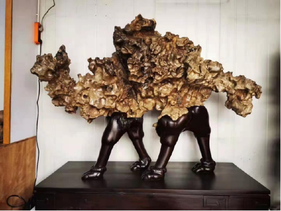 题名:(鲲鹏展翅) 石种;广西北丹石 收藏;(兄弟石馆) 电话:13014899635 规格;486-165-178厘米 记者:听闻您最近收藏了一块造型独特、富于韵味的大型北丹石,能否介绍一下这块轰动石界的北丹石的具体情况。 齐西零:此石长五米三、宽一米六、高一米六八、重约六吨,可以说是上天的绝美佳作,石头整体造型像龙,又像龙生九子的第六子(睚眦龙)、石头纹理变化栩栩如生,质地坚硬细腻,石肤光滑圆润,经过湍急的红水河亿万年的冲刷,造就了它流畅的线条、奇特的孔洞和气势磅礴的丰富造型,它既有古朴顽拙的透瘦漏皱传统韵味,又不失雕塑感和现代气息,古铜色皮色肌肤更体现北丹石之魅力。我为奇石起名为“龙腾盛世”,寓意着我中华之崛起,中国之强大!