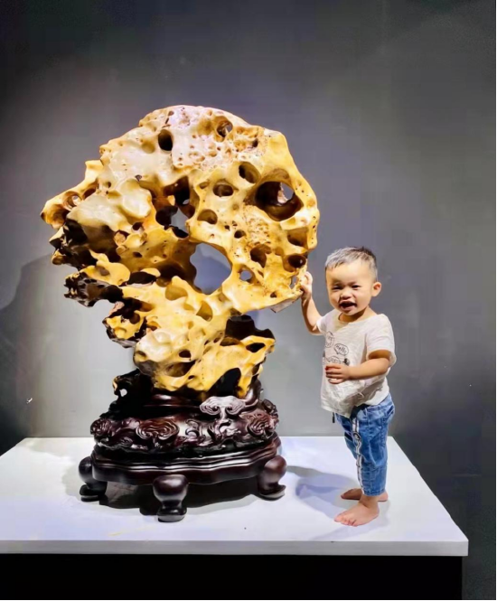 题名;(洞天褔地) 石种:广西北丹石 规格:128-46-159CM 收藏:(兄弟石馆) 电话:13014899635 记者:在柳州您收藏的北丹石,以大奇美全和屡屡斩获大奖被誉为“北丹石王”,你怎么看待这一称号?您认为好石头的标准是什么? 齐西零:所谓“北丹石王”,那都是石届朋友开玩笑的说法。山外有山,人外有人,我只是对北丹石的一种酷爱与执着追求而已,不过我愿意尽自己的微薄之力传承好石文化。对于获奖,我并不怎么看重,我认为一块好的奇石不只是有深层次的内涵,更有开门见山的自然美。好的奇石都有一种独特的魅力,总能吸引人的眼球。也许你们对奇石一知半解,也许你们根本不懂其奇石理论,但我把好的奇石往你们跟前一放你们就被吸引了,眼睛就发亮,不忍移开,这样的好石头才是真正的大家都认可的好石头。 记者:您已经有很多漂亮的北丹石了,您计划在哪里展示?怎么展示? 齐西零:我这辈子注定与石头分不开了,好的石头都是值得喜欢与珍藏。石头是有生命的,好石头必须要有好的归宿。我的愿望是,建一座自己的奇石博物馆,把自己喜爱的石头展示出来与人共赏,因为奇石是柳州的标志,是柳州最为显像的文化符号之一,柳州多几个奇石馆可以帮助柳州市形成宜业、宜乐、宜游的良好环境,创造更加和谐幸福的美好生活,这就是我的目标与理想!